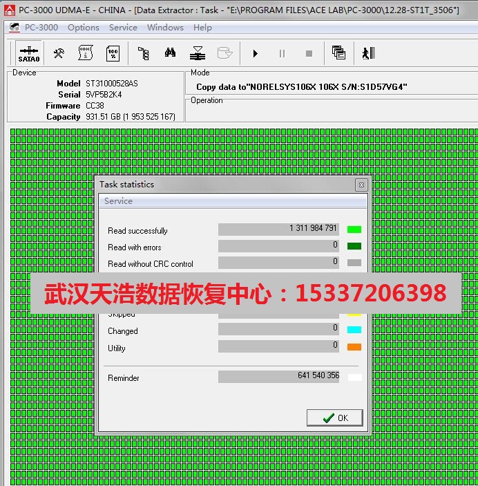 解决方案:收到硬盘后,接到我们专业的数据恢复工具PC-3000 UDMA Express上,检测固件,修复固件后,硬盘正常认盘,最后成功恢复客户几乎全部的重要资料!包含财务数据库资料。
