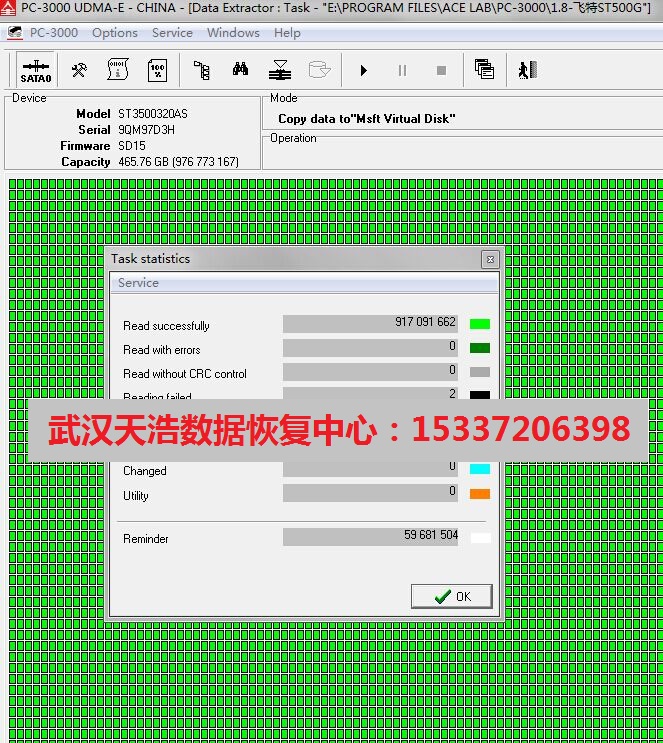 解决方案:接硬盘后,接到PC-3000 UDMA Express上,通过检测,发现是固件损坏导致的硬盘不识别,处理固件后,最后成功恢复客户公司几乎全部的重要资料!