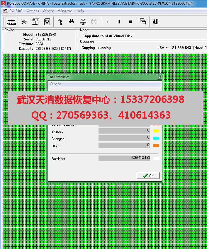 解决方案:收到硬盘后,通过检测,我们发现电路板损坏,更换相同的电路板和ROM后,再通电,硬盘敲盘,应该是磁头前置放大器也损坏,只有再更换磁头了,从我们的备件库找到匹配的备件,在无尘柜里面更换磁头,再接到数据恢复工具PC-3000 UDMA Express上,通电硬盘认盘,客户的数据量很小,只有一点点表格文档,最后成功恢复客户全部文档资料!