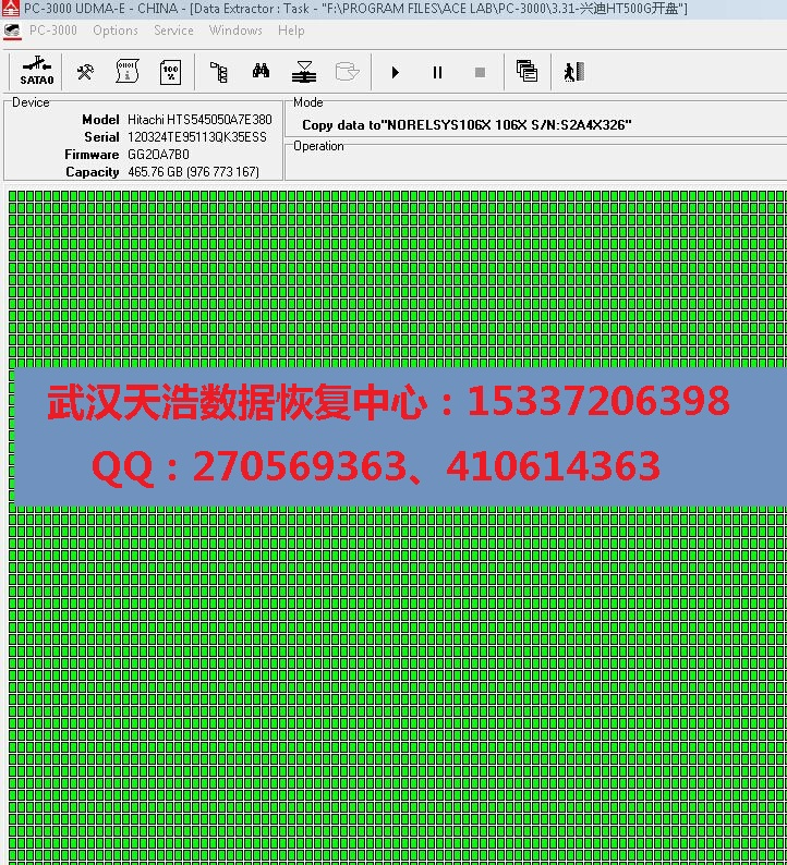 解决方案:很明显磁头损坏,从我们的备件库找到匹配的备件,在无尘柜里面更换磁头,再接到数据恢复工具PC-3000 UDMA Express上,通电硬盘认盘,直接镜像,成功恢复客户需要的几乎全部工作资料!