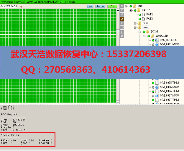解决方案:我们逐一拆下芯片,再接到我们专业的FLASH恢复工具Flash Extrator上,读取芯片后,再分析重组,最后成功完美恢复客户全部的重要视频资料!