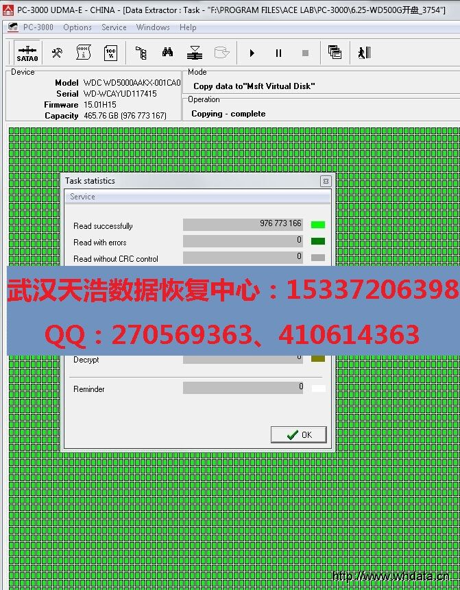 WD5000AAKX-001CA0开盘恢复数据成功案例!