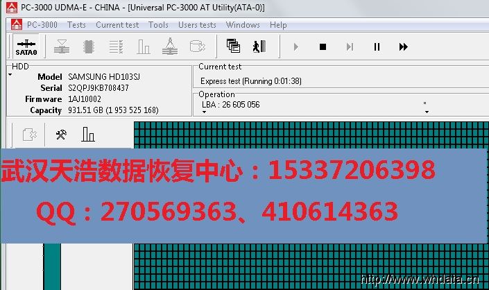 接到数据恢复工具PC-3000 UDMA Express上,处理固件,再断电通电硬盘认盘,扫描正常。然后发回给同行自己做镜像。