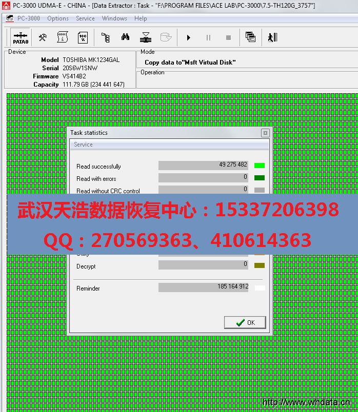 解决方案:收到硬盘后,接到数据恢复工具PC-3000 UDMA Express上,通电检测,发现是固件损坏导致数据区不能正常访问,处理固件后,正常读取到数据区,成功恢复里面几乎全部的重要数据!