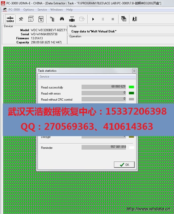 WD3200BEVT-60ZCT1开盘恢复数据成功案例!