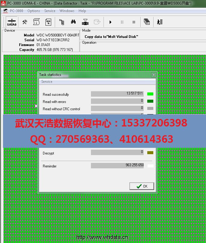 WD5000BEVT-00A0RT0开盘恢复数据成功案例!