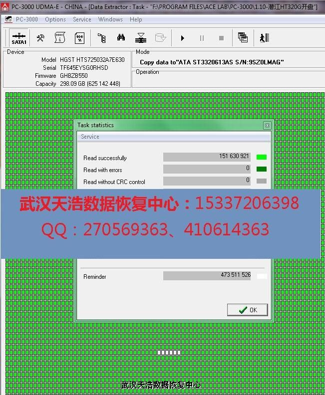 解决方案:收到硬盘后,从我们的备件库找到匹配的备件,在无尘柜里面更换磁头,再接到数据恢复工具PC-3000 UDMA Express上,硬盘认盘,镜像,成功恢复客户需要的几乎全部工作资料和家庭照片!