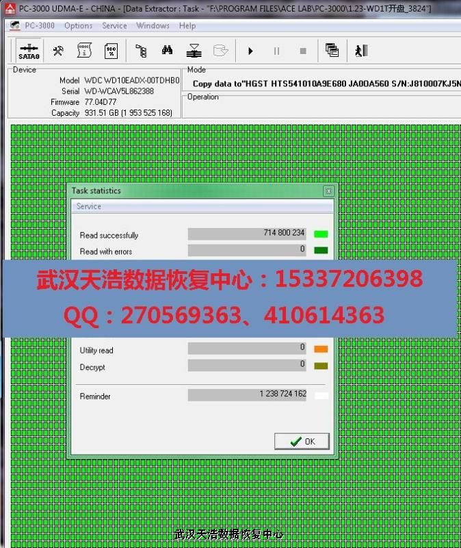 解决方案:收到硬盘后,从我们的备件库找到匹配的备件,在无尘柜里面更换磁头,再接到数据恢复工具PC-3000 UDMA Express上,通电硬盘认盘,分区正常显示,数据目录全部正常展开,镜像,成功恢复客户公司多年的设计文件!