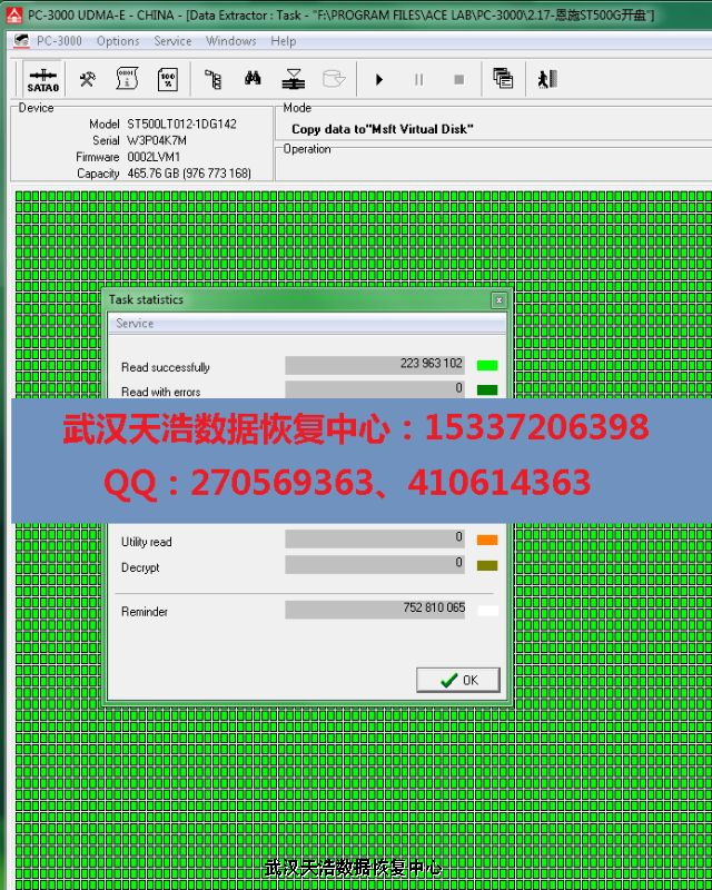 解决方案:收到硬盘后,我们在无尘柜更换兼容的磁头,再接到数据恢复工具PC-3000 UDMA Express上,通电硬盘认盘,镜像,客户公司的重要工作资料和个人照片几乎全部成功恢复!