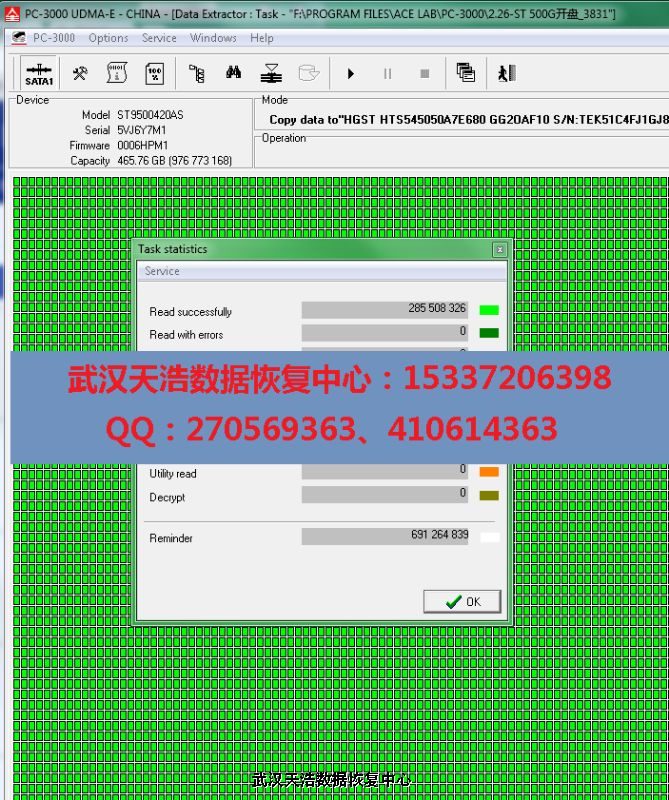 武昌客户ST9500420AS盘片划伤二次开盘恢复成功案例!