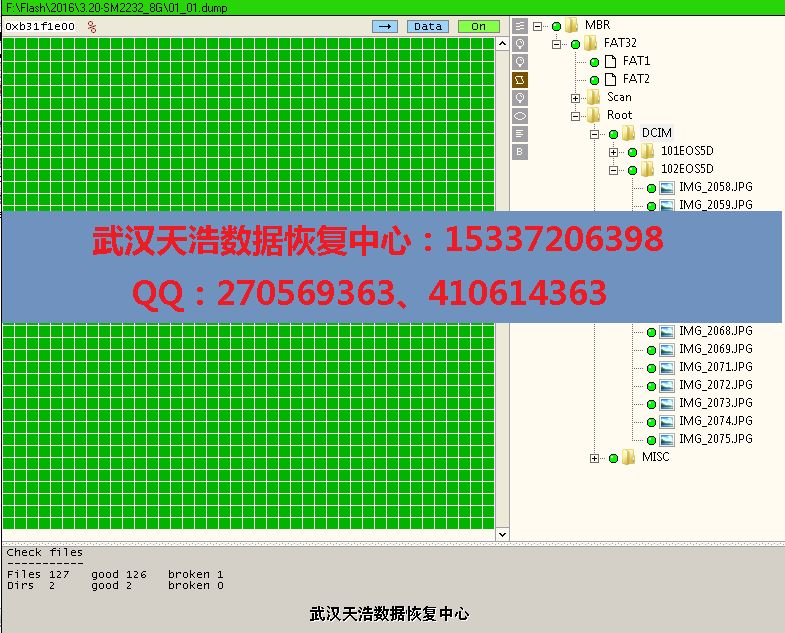 解决方案:接到卡后,拆开,发现主控是SM2232T,2个FLASH芯片,我使用专业的FLASH恢复工具Flash Extrator读取,再分析重组,成功恢复也客户的几乎所有照片。