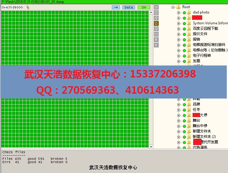 解决方案:接到U盘后,用设备取下BGA FLASH芯片,使用专业的FLASH恢复工具Flash Extrator,更换对应的BGA152的座子,读取,再分析重组,成功恢复客户的几乎所有公司文件。