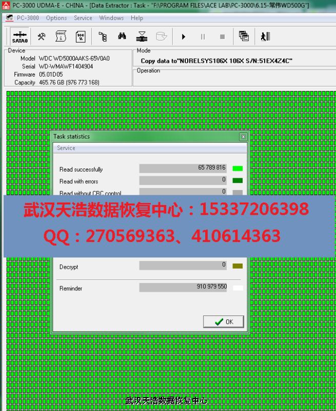 WD5000AAKS-65V0A0坏道恢复数据成功案例!