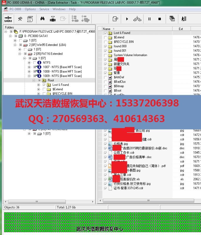 解决方案:收到硬盘后,接到数据恢复工具PC-3000 UDMA Express上,通电检测发现固件损坏,修复固件后再通电硬盘认盘,进DE分头镜像,最后成功恢复客户公司的绝大部分数据!