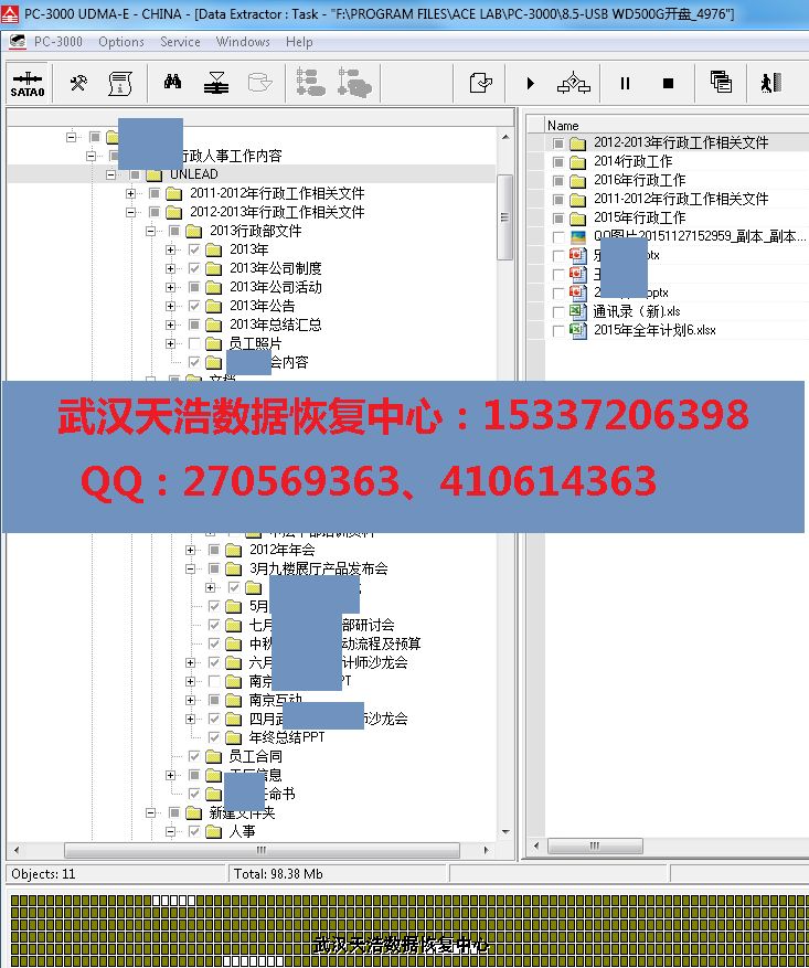 解决方案:收到硬盘后,从我们的备件库找到匹配的备件,在无尘柜里面打开盘体,发现盘片有明显的划伤,我们处理清洁盘片后,再更换磁头,再接到数据恢复工具PC-3000 UDMA Express上,通电硬盘不认盘,通过固件虚拟处理,硬盘正常,进DE建镜像任务,检测发现硬盘带硬件加密,使用UDMA的解密功能,分区正常显示,数据目录全部正常展开,镜像,成功恢复客户部分的文档和照片类数据!