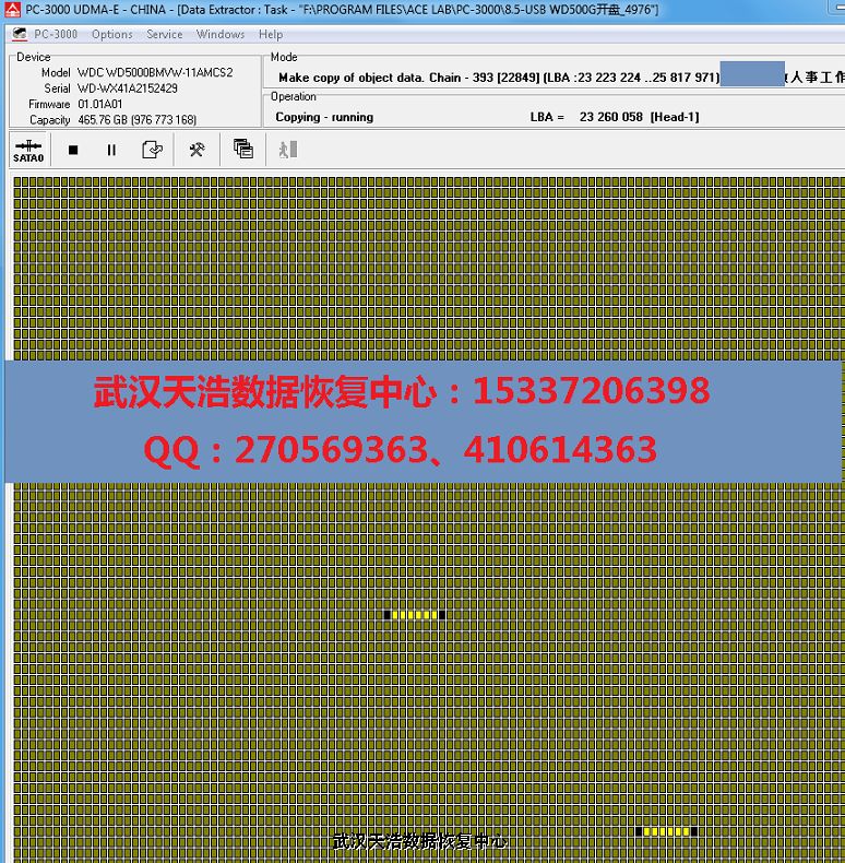 故障现象:西数500G的原装移动笔记本硬盘,不小心摔在地上,再通电异响。客户多年的工作和私人数据都在里面,通过熟人推荐,找到我们希望能帮忙恢复里面的数据。