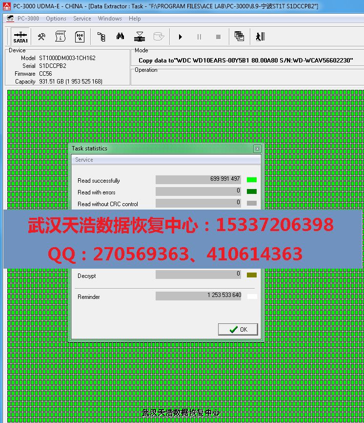 宁波同行ST1000DM003开盘恢复数据成功案例!