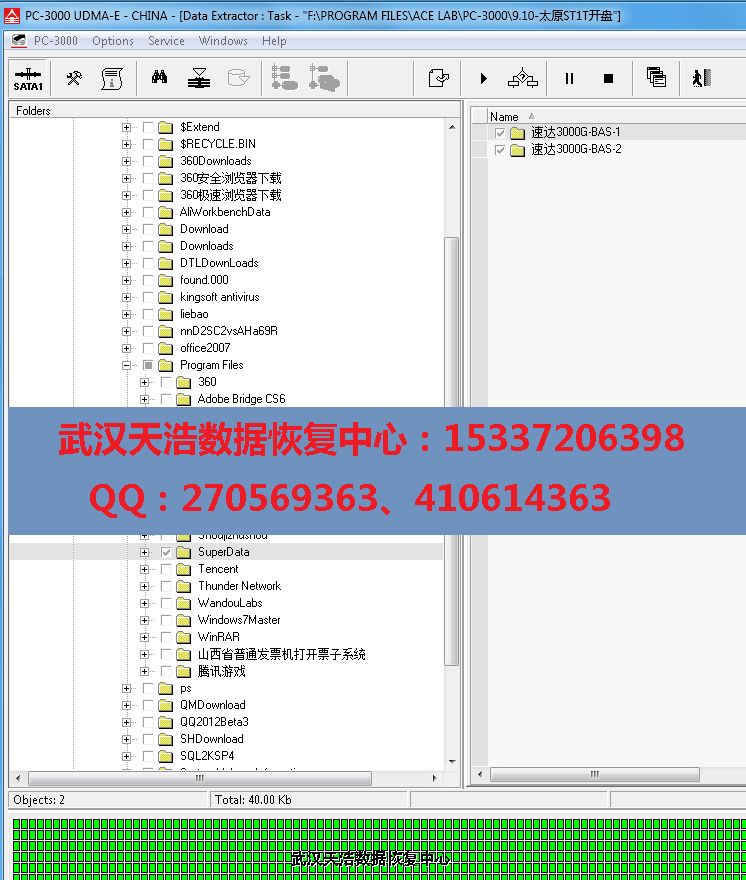 解决方案:收到硬盘后,我们在无尘柜里面更换匹配的磁头,再通过特殊处理后,接到数据恢复工具PC-3000 UDMA Express上,通电硬盘不认盘,处理固件后硬盘认盘,再镜像,成功恢复客户的大部分数据!包含里面的多份速达数据库文件!