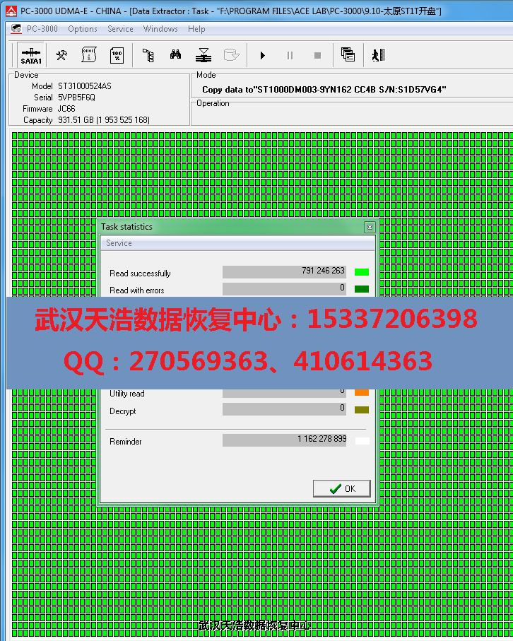 太原同行ST31000524AS盘片内圈划伤开盘恢复成功案例!