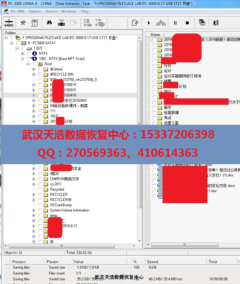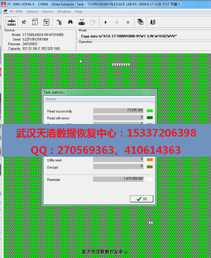 解决方案:收到硬盘后,从我们的备件库找到匹配的备件,在无尘柜里面更换磁头,再接到数据恢复工具PC-3000 UDMA Express上,通电硬盘认盘,DE分头镜像,成功恢复客户的几乎全部数据!