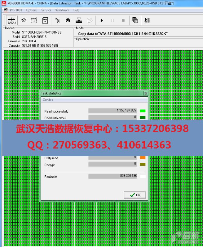 解决方案:收到硬盘后,从我们的备件库找到匹配的备件,在无尘柜里面更换磁头,再接到数据恢复工具PC-3000 UDMA Express上,通电硬盘认盘,DE分头镜像,成功恢复客户的几乎全部数据!客户是做游戏软件开发的,里面有他收集的相关所有资料和自己写的程序源代码,成功恢复后,客户非常高兴的取走了数据。