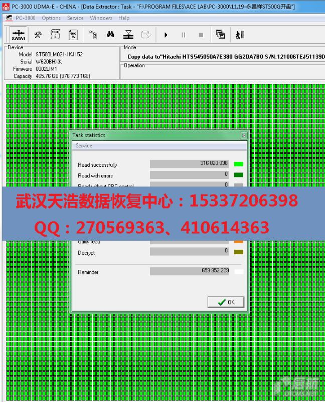 解决方案:收到硬盘后,我们在无尘环境更换匹配的磁头,再接到数据恢复工具PC-3000 UDMA Express上,通电硬盘认盘,镜像,最后客户公司重要的文件基本都成功恢复!
