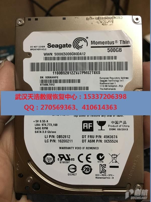 硬盘型号:ST500LT012-9WS142 SN:S0VAHHFE FW:0001LVM1 电路板号:100696152