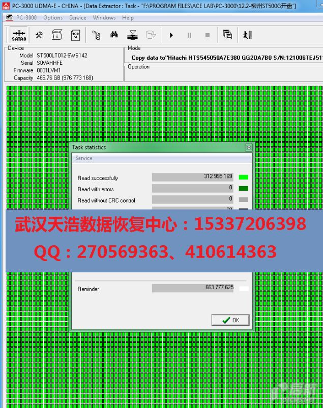 解决方案:收到硬盘后,我们在无尘环境更换匹配的磁头,再接到数据恢复工具PC-3000 UDMA Express上,通电硬盘认盘,镜像,最后客户公司的重要文件基本都成功恢复!