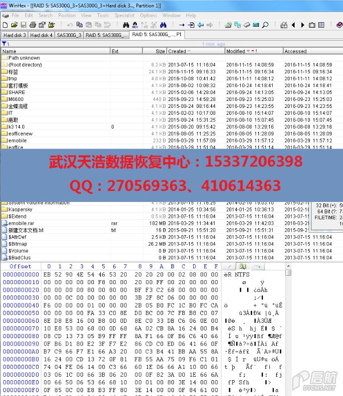 解决方案:我们收盘后,检测发现,3块盘有坏道,一块有有固件问题,修复硬盘固件问题,然后对每个硬盘做物理镜像,镜像完对镜像进行分析,得出RAID原始参数,最后成功重组RAID5,里面所有数据基本全部完美恢复!