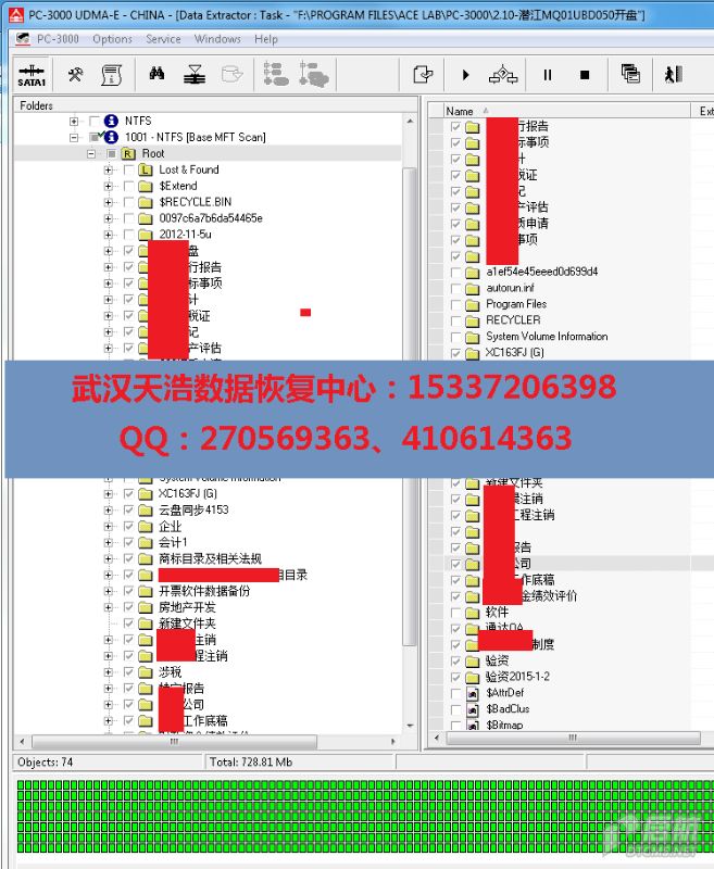 解决方案:收到硬盘后,从我们的备件库找到匹配的备件,在无尘柜里面更换磁头,再更换匹配的SATA电路板,然后接到数据恢复工具PC-3000 UDMA Express上,通电硬盘认盘,DE分头镜像,成功恢复客户的几乎全部数据!