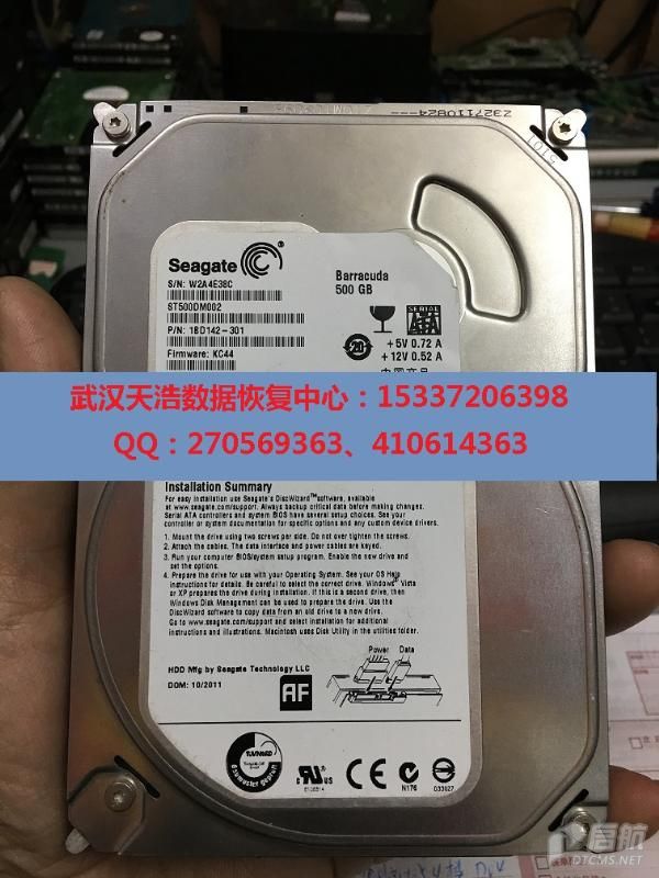 硬盘型号:ST500DM002-1BD142 SN:W2A4E38C FW:KC44 电路板:100535704