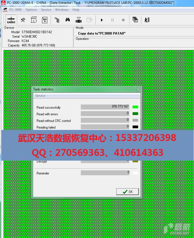 处理固件后,再通电硬盘正常认盘,再镜像,成功恢复客户的几乎全部数据!