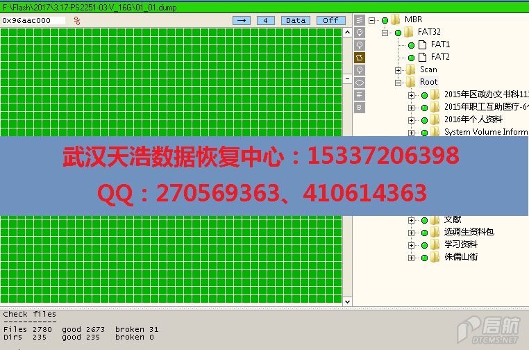 解决方案:接到U盘后,取下FLASH芯片,使用专业的FLASH恢复工具Flash Extrator,读取,再分析重组,成功恢复客户U盘内的大部分数据。