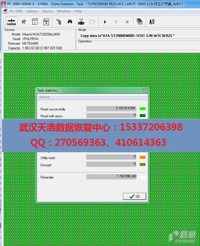 Hitachi HUA723020ALA641开盘恢复成功案例!