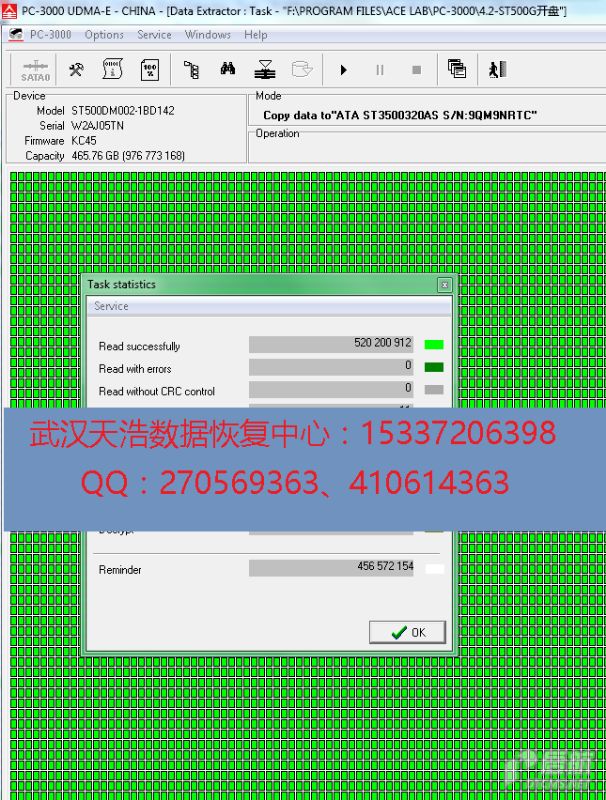 解决方案:收到硬盘后,我们在无尘环境拆开发现硬盘盘片外圈有轻微的划伤,更换匹配的磁头,再做特殊处理,接到数据恢复工具PC-3000 UDMA Express上,通电硬盘认盘,镜像,最后客户公司重要的数据基本都成功恢复!