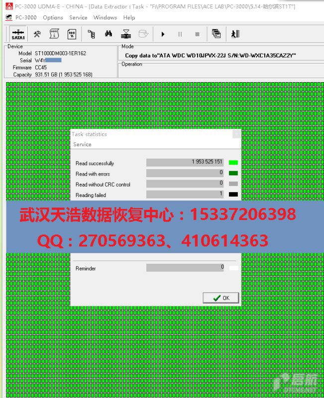 处理固件后硬盘认盘,再镜像,成功恢复客户的几乎全部数据!