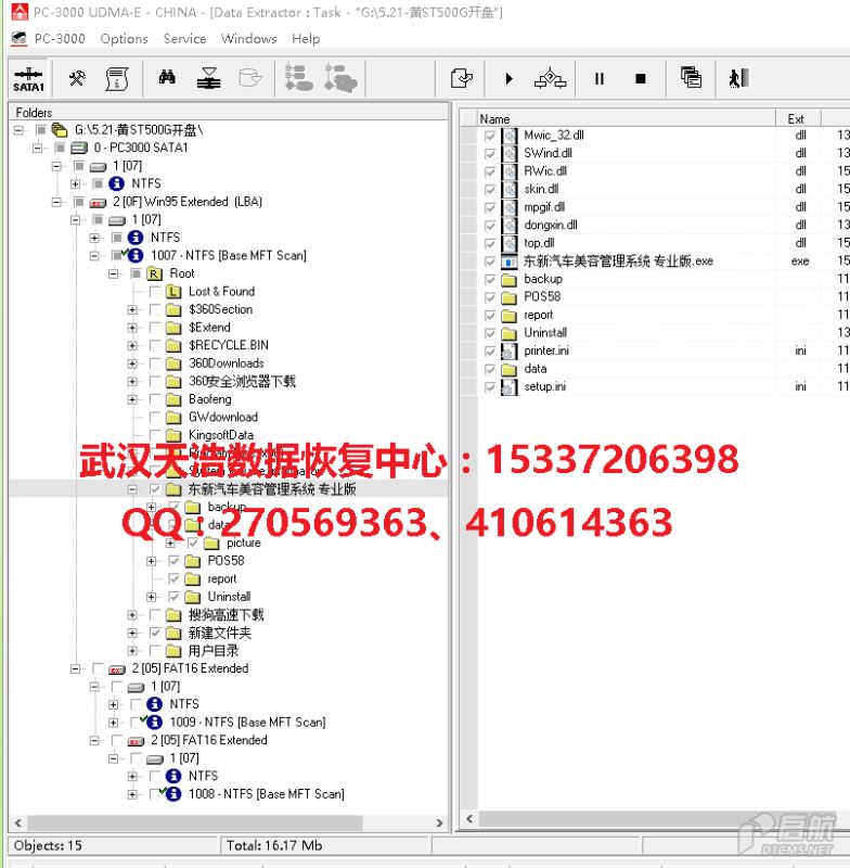 解决方案:收到硬盘后,在无尘环境下开盘更换匹配的磁头,再接到数据恢复工具PC-3000 UDMA Express上,通电硬盘正常认盘,最后成功恢复出客户汽修软件的数据库文件以及其它的帐务文件。