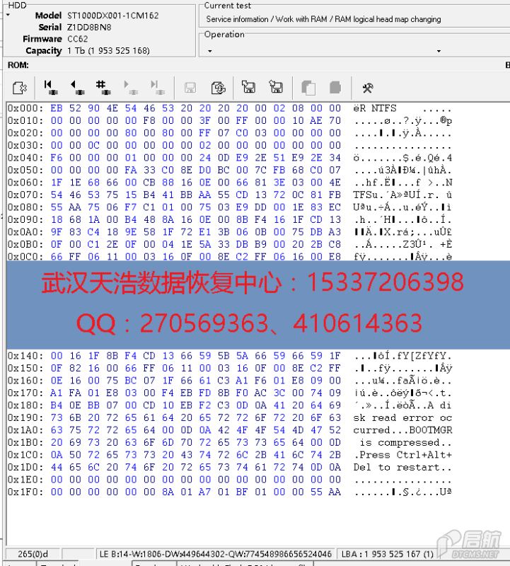 ST1000DX001-1CM162 SSHD不认盘恢复成功案例