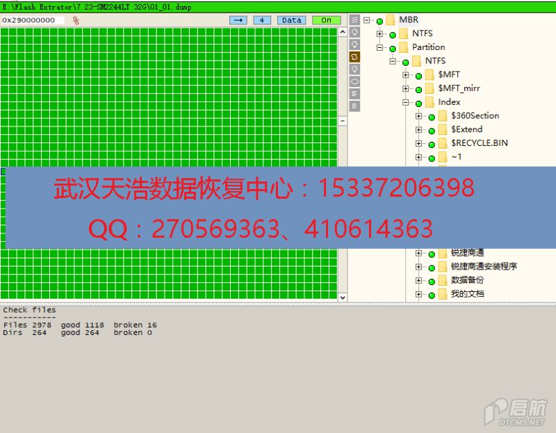 解决方案:接到硬盘后,我拆下FLASH芯片,用我们订做的TSOP48的宽座子,连到FE上读取,分析,最后成功恢复客户要的数据(这种恢复多半都是要里面的数据库,数据库恢复出来后通过验证正常附加,完美恢复)。
