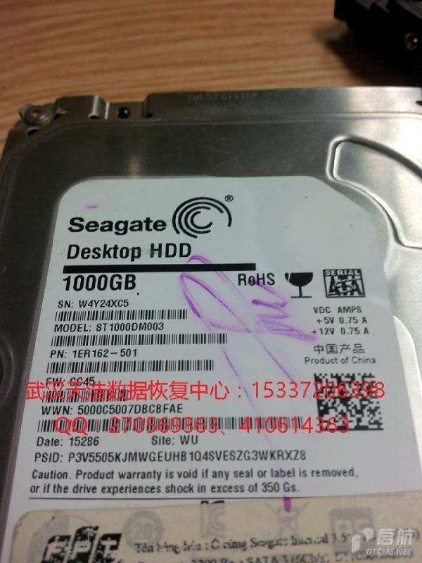硬盘型号:ST1000DM001-1ER162 SN:W4Y24XC5 FW:CC45 电路板号:100724095