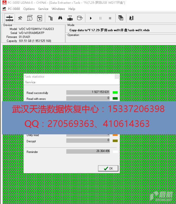 故障现象:西数1000G原装移动硬盘,不小心掉到地上,再通电敲盘。是USB接口在电路板上的一体板。