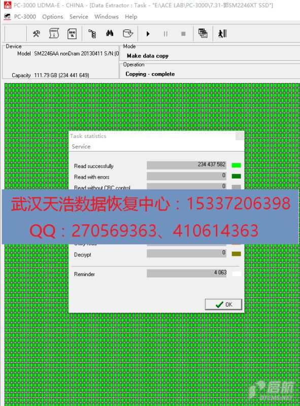 解决方案:收到硬盘后,使用专业的SSD恢复工具ACE PC3000 SSD,处理固件问题,虚拟读取,成功恢复客户的大部分数据。