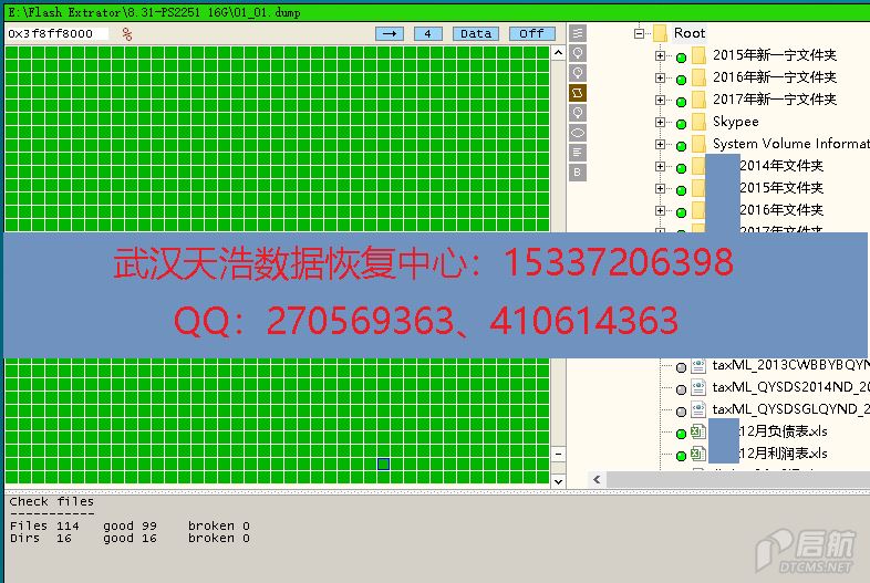 解决方案:接到U盘后,取下FLASH芯片,使用专业的FLASH恢复工具Flash Extrator,读取,再分析重组,成功恢复客户U盘内的全部数据。