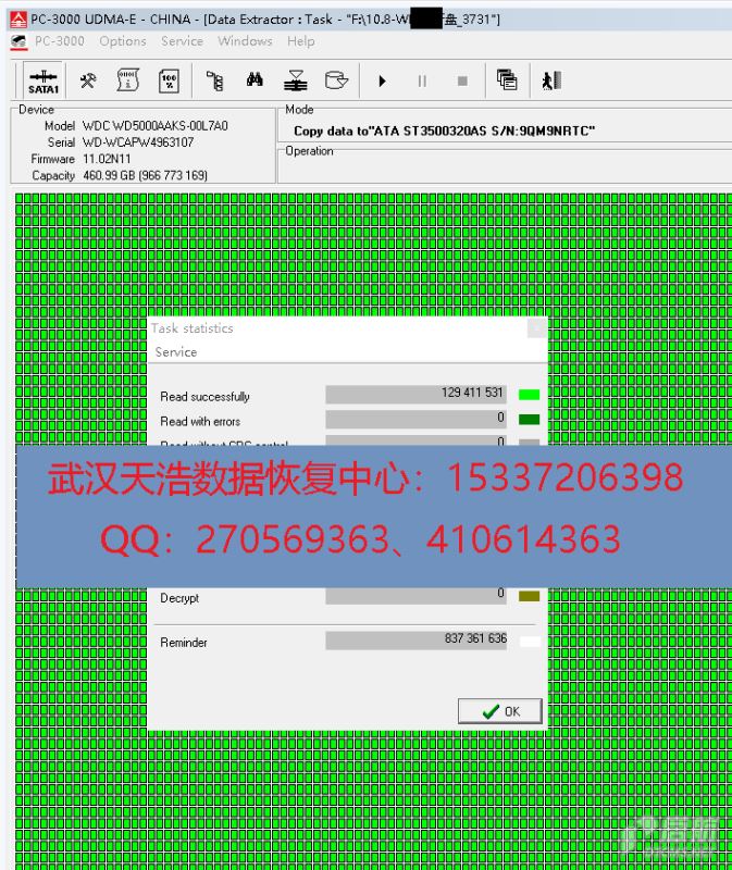 故障现象:WD500G的重盘,客户在美国找一家没恢复出来,后来回国探亲带回来,经熟人介绍,找到我们希望帮忙恢复。