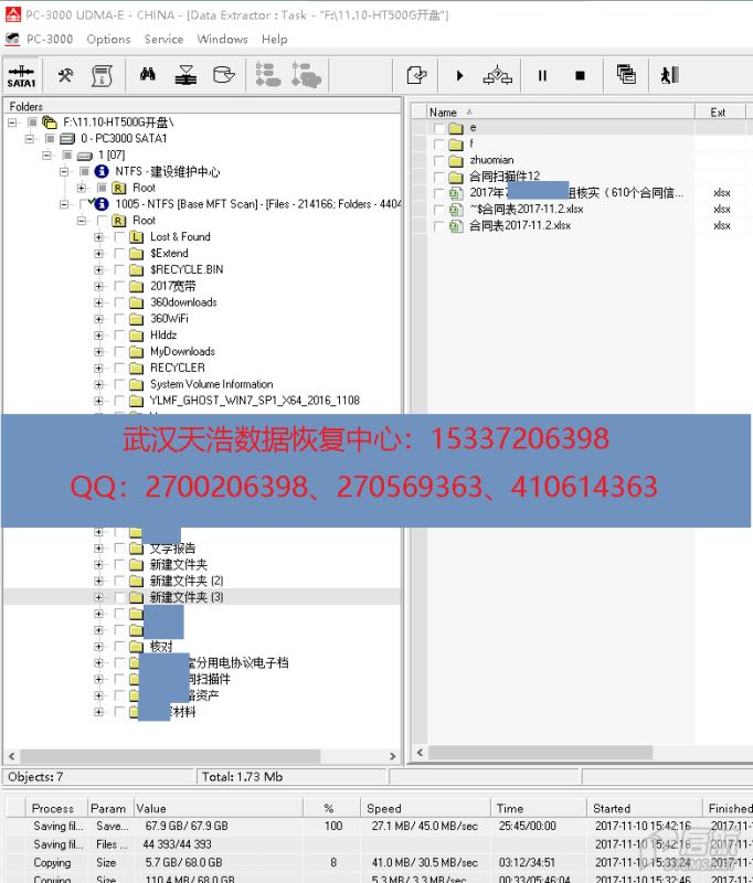 解决方案:收到硬盘后,从我们的备件库找到匹配的备件,在无尘柜里面更换磁头,再接到数据恢复工具PC-3000 UDMA Express上,硬盘认盘,镜像,成功恢复客户单位需要的几乎全部数据!