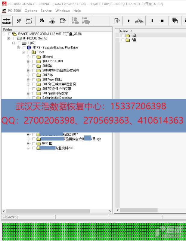 解决方案:收到硬盘后,我们在无尘环境更换兼容的磁头,再接到数据恢复工具PC-3000 UDMA Express上,通电硬盘认盘,DE分头镜像,成功恢复客户的绝大部分数据!