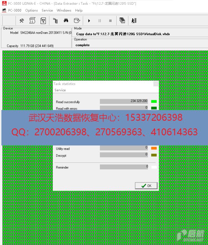 解决方案:收到硬盘后,使用专业的SSD恢复工具ACE PC3000 SSD,处理固件问题,虚拟读取,成功恢复客户的绝大部分数据。