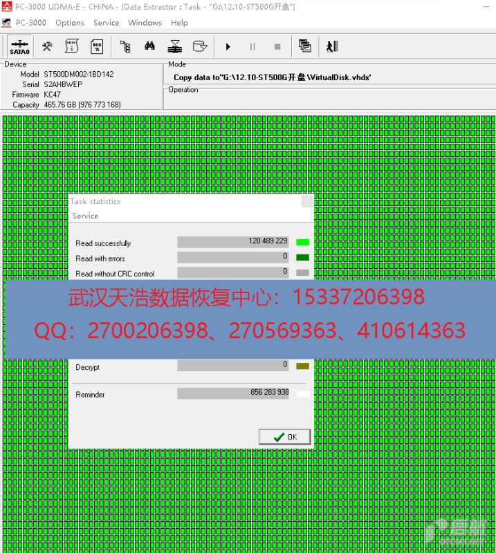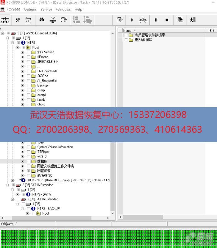 解决方案:收到硬盘后,我们在无尘环境打开,更换兼容的磁头,接到数据恢复工具PC-3000 UDMA Express上,通电硬盘认盘,DE分头镜像,成功恢复客户的会员数据库及其它一些工作相关数据!