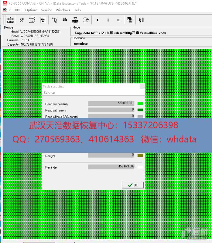 WD5000BMVV-11SXZS1开盘恢复数据成功案例