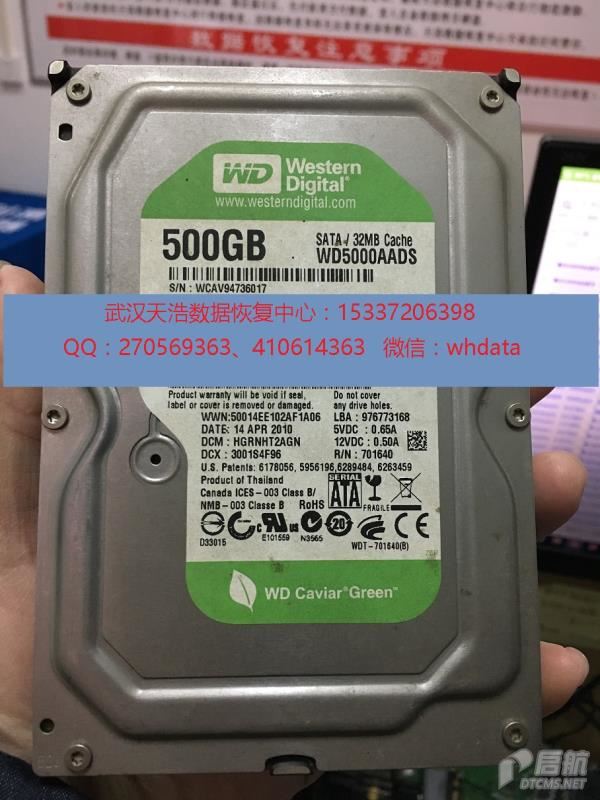硬盘型号:WD5000AADS-00S9B0 SN:WCAV94736017 FW:7700BC 电路板号:771640-003